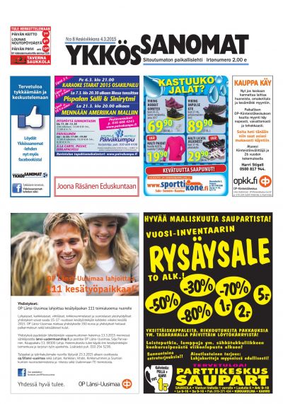Ykkössanomat on myös alueensa vankka ilmoitusväline: koska paikallislehti luetaan moneen kertaan ja säilytetään usein seuraavan lehden ilmestymiseen saakka, ilmoituksetkin luetaan tarkkaan. Lehden ilmestymispäivä torstai on ilmoitusasiakkaidemme kannalta erinomainen: monesti perheet tekevät isommat ostoksensa yhdessä viikonloppuna.