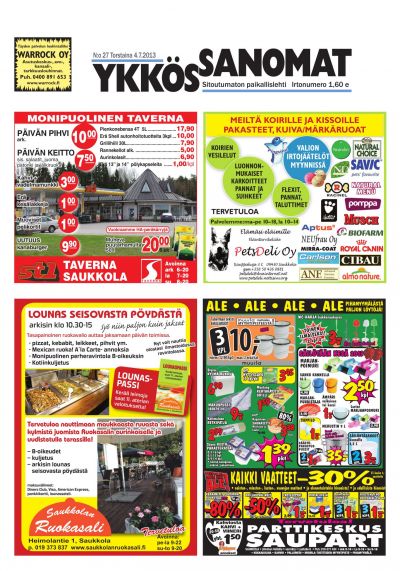 Ykkössanomat on myös alueensa vankka ilmoitusväline: koska paikallislehti luetaan moneen kertaan ja säilytetään usein seuraavan lehden ilmestymiseen saakka, ilmoituksetkin luetaan tarkkaan. Lehden ilmestymispäivä torstai on ilmoitusasiakkaidemme kannalta erinomainen: monesti perheet tekevät isommat ostoksensa yhdessä viikonloppuna.