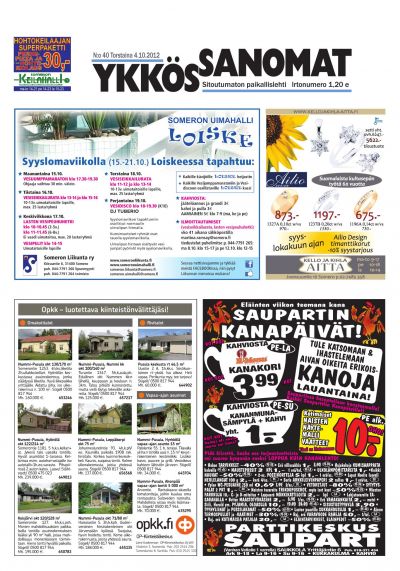 Ykkössanomat on myös alueensa vankka ilmoitusväline: koska paikallislehti luetaan moneen kertaan ja säilytetään usein seuraavan lehden ilmestymiseen saakka, ilmoituksetkin luetaan tarkkaan. Lehden ilmestymispäivä torstai on ilmoitusasiakkaidemme kannalta erinomainen: monesti perheet tekevät isommat ostoksensa yhdessä viikonloppuna.