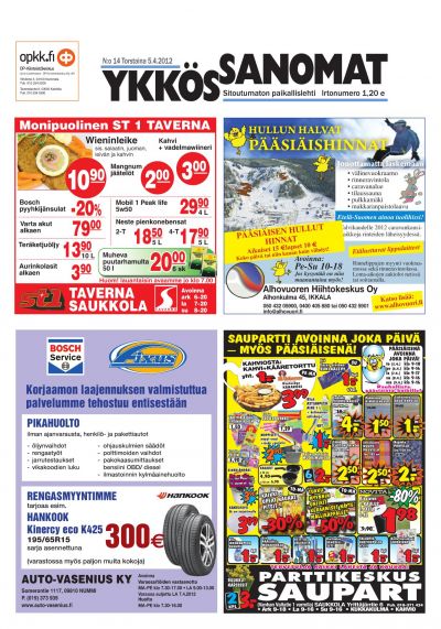 Ykkössanomat on myös alueensa vankka ilmoitusväline: koska paikallislehti luetaan moneen kertaan ja säilytetään usein seuraavan lehden ilmestymiseen saakka, ilmoituksetkin luetaan tarkkaan. Lehden ilmestymispäivä torstai on ilmoitusasiakkaidemme kannalta erinomainen: monesti perheet tekevät isommat ostoksensa yhdessä viikonloppuna.