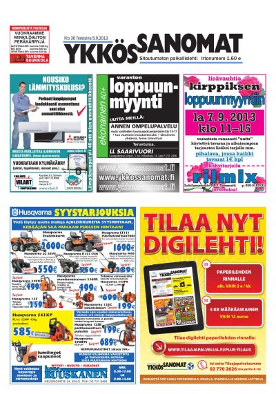 Ykkössanomat on myös alueensa vankka ilmoitusväline: koska paikallislehti luetaan moneen kertaan ja säilytetään usein seuraavan lehden ilmestymiseen saakka, ilmoituksetkin luetaan tarkkaan. Lehden ilmestymispäivä torstai on ilmoitusasiakkaidemme kannalta erinomainen: monesti perheet tekevät isommat ostoksensa yhdessä viikonloppuna.