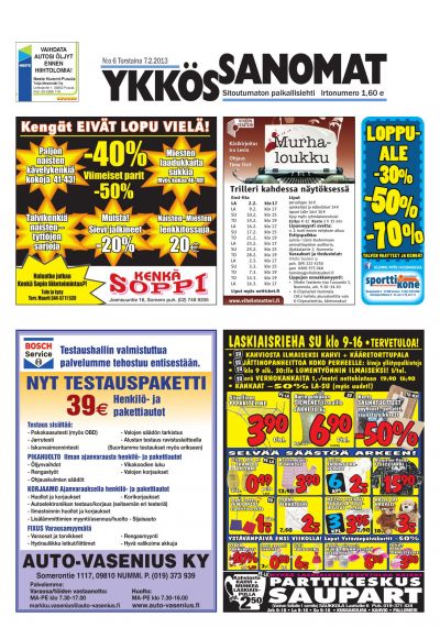 Ykkössanomat on myös alueensa vankka ilmoitusväline: koska paikallislehti luetaan moneen kertaan ja säilytetään usein seuraavan lehden ilmestymiseen saakka, ilmoituksetkin luetaan tarkkaan. Lehden ilmestymispäivä torstai on ilmoitusasiakkaidemme kannalta erinomainen: monesti perheet tekevät isommat ostoksensa yhdessä viikonloppuna.