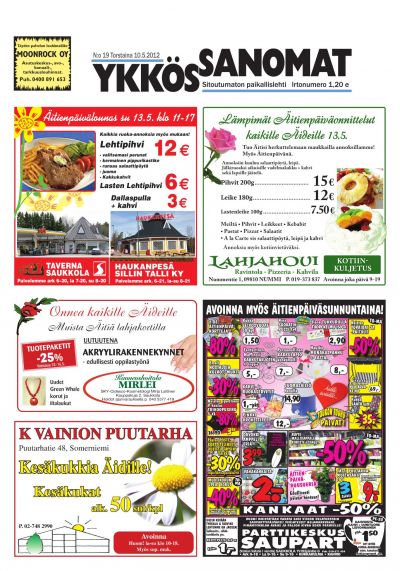 Ykkössanomat on myös alueensa vankka ilmoitusväline: koska paikallislehti luetaan moneen kertaan ja säilytetään usein seuraavan lehden ilmestymiseen saakka, ilmoituksetkin luetaan tarkkaan. Lehden ilmestymispäivä torstai on ilmoitusasiakkaidemme kannalta erinomainen: monesti perheet tekevät isommat ostoksensa yhdessä viikonloppuna.