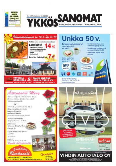 Ykkössanomat on myös alueensa vankka ilmoitusväline: koska paikallislehti luetaan moneen kertaan ja säilytetään usein seuraavan lehden ilmestymiseen saakka, ilmoituksetkin luetaan tarkkaan. Lehden ilmestymispäivä torstai on ilmoitusasiakkaidemme kannalta erinomainen: monesti perheet tekevät isommat ostoksensa yhdessä viikonloppuna.