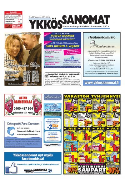 Ykkössanomat on myös alueensa vankka ilmoitusväline: koska paikallislehti luetaan moneen kertaan ja säilytetään usein seuraavan lehden ilmestymiseen saakka, ilmoituksetkin luetaan tarkkaan. Lehden ilmestymispäivä torstai on ilmoitusasiakkaidemme kannalta erinomainen: monesti perheet tekevät isommat ostoksensa yhdessä viikonloppuna.