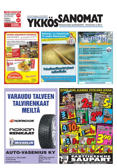Ykkössanomat on myös alueensa vankka ilmoitusväline: koska paikallislehti luetaan moneen kertaan ja säilytetään usein seuraavan lehden ilmestymiseen saakka, ilmoituksetkin luetaan tarkkaan. Lehden ilmestymispäivä torstai on ilmoitusasiakkaidemme kannalta erinomainen: monesti perheet tekevät isommat ostoksensa yhdessä viikonloppuna.