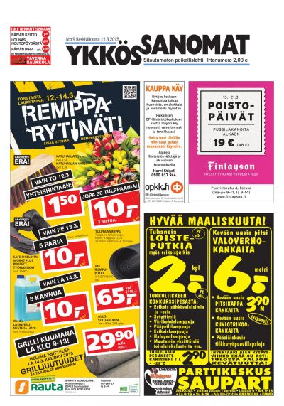 Ykkössanomat on myös alueensa vankka ilmoitusväline: koska paikallislehti luetaan moneen kertaan ja säilytetään usein seuraavan lehden ilmestymiseen saakka, ilmoituksetkin luetaan tarkkaan. Lehden ilmestymispäivä torstai on ilmoitusasiakkaidemme kannalta erinomainen: monesti perheet tekevät isommat ostoksensa yhdessä viikonloppuna.