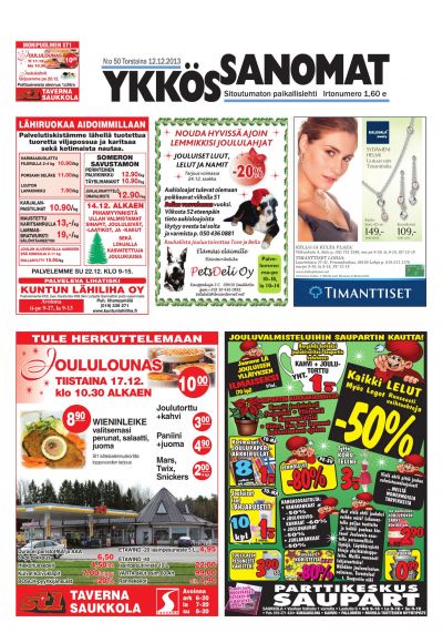 Ykkössanomat on myös alueensa vankka ilmoitusväline: koska paikallislehti luetaan moneen kertaan ja säilytetään usein seuraavan lehden ilmestymiseen saakka, ilmoituksetkin luetaan tarkkaan. Lehden ilmestymispäivä torstai on ilmoitusasiakkaidemme kannalta erinomainen: monesti perheet tekevät isommat ostoksensa yhdessä viikonloppuna.