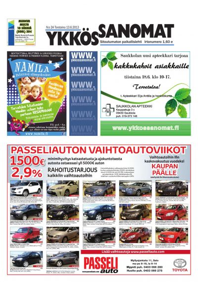 Ykkössanomat on myös alueensa vankka ilmoitusväline: koska paikallislehti luetaan moneen kertaan ja säilytetään usein seuraavan lehden ilmestymiseen saakka, ilmoituksetkin luetaan tarkkaan. Lehden ilmestymispäivä torstai on ilmoitusasiakkaidemme kannalta erinomainen: monesti perheet tekevät isommat ostoksensa yhdessä viikonloppuna.