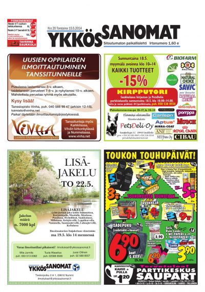 Ykkössanomat on sitoutumaton paikallislehti, joka kertoo Nummi-Pusulan, Karjalohjan, Sammatin ja Suomusjärven alueen asioista, tapahtumista, ihmisistä ja ilmiöistä.