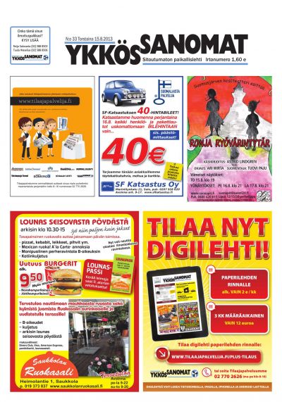 Ykkössanomat on myös alueensa vankka ilmoitusväline: koska paikallislehti luetaan moneen kertaan ja säilytetään usein seuraavan lehden ilmestymiseen saakka, ilmoituksetkin luetaan tarkkaan. Lehden ilmestymispäivä torstai on ilmoitusasiakkaidemme kannalta erinomainen: monesti perheet tekevät isommat ostoksensa yhdessä viikonloppuna.