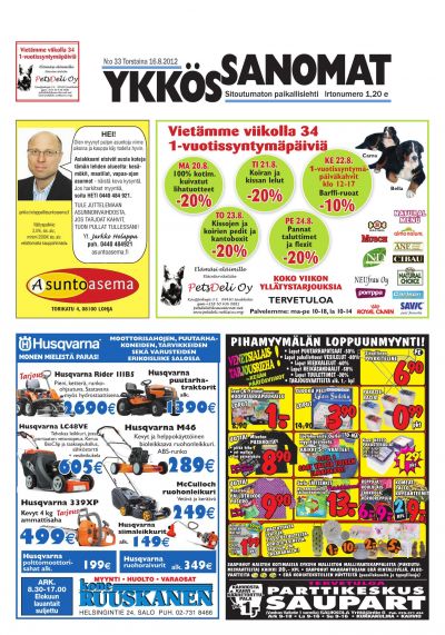 Ykkössanomat on myös alueensa vankka ilmoitusväline: koska paikallislehti luetaan moneen kertaan ja säilytetään usein seuraavan lehden ilmestymiseen saakka, ilmoituksetkin luetaan tarkkaan. Lehden ilmestymispäivä torstai on ilmoitusasiakkaidemme kannalta erinomainen: monesti perheet tekevät isommat ostoksensa yhdessä viikonloppuna.
