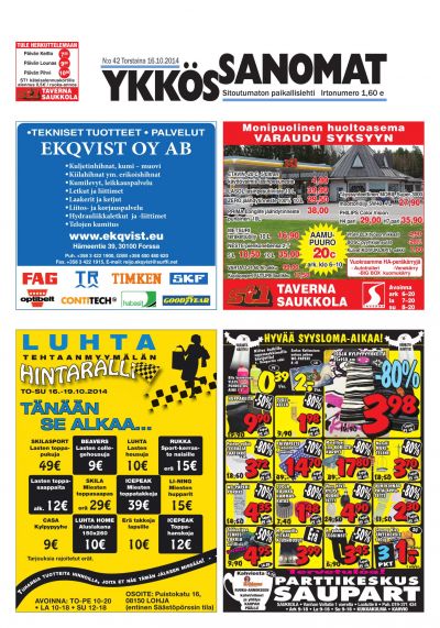 Ykkössanomat on myös alueensa vankka ilmoitusväline: koska paikallislehti luetaan moneen kertaan ja säilytetään usein seuraavan lehden ilmestymiseen saakka, ilmoituksetkin luetaan tarkkaan. Lehden ilmestymispäivä torstai on ilmoitusasiakkaidemme kannalta erinomainen: monesti perheet tekevät isommat ostoksensa yhdessä viikonloppuna.