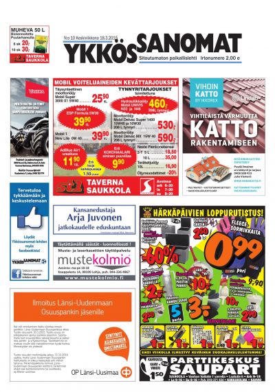 Ykkössanomat on myös alueensa vankka ilmoitusväline: koska paikallislehti luetaan moneen kertaan ja säilytetään usein seuraavan lehden ilmestymiseen saakka, ilmoituksetkin luetaan tarkkaan. Lehden ilmestymispäivä torstai on ilmoitusasiakkaidemme kannalta erinomainen: monesti perheet tekevät isommat ostoksensa yhdessä viikonloppuna.