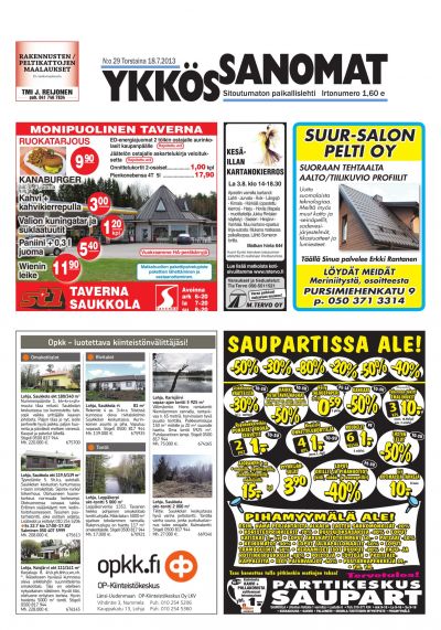 Ykkössanomat on myös alueensa vankka ilmoitusväline: koska paikallislehti luetaan moneen kertaan ja säilytetään usein seuraavan lehden ilmestymiseen saakka, ilmoituksetkin luetaan tarkkaan. Lehden ilmestymispäivä torstai on ilmoitusasiakkaidemme kannalta erinomainen: monesti perheet tekevät isommat ostoksensa yhdessä viikonloppuna.