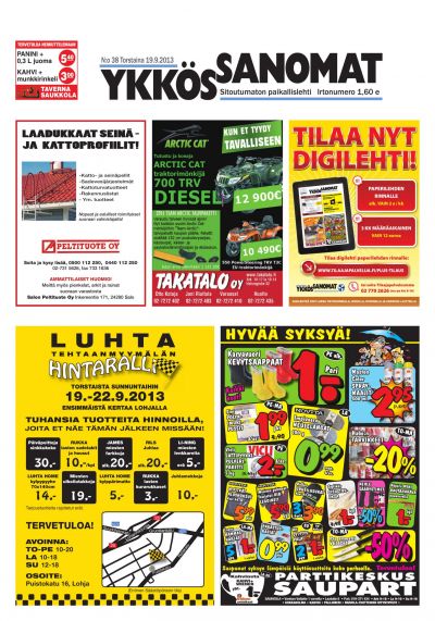 Ykkössanomat on myös alueensa vankka ilmoitusväline: koska paikallislehti luetaan moneen kertaan ja säilytetään usein seuraavan lehden ilmestymiseen saakka, ilmoituksetkin luetaan tarkkaan. Lehden ilmestymispäivä torstai on ilmoitusasiakkaidemme kannalta erinomainen: monesti perheet tekevät isommat ostoksensa yhdessä viikonloppuna.