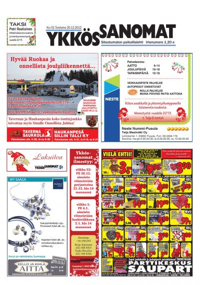 Ykkössanomat on sitoutumaton paikallislehti, joka kertoo Nummi-Pusulan, Karjalohjan, Sammatin ja Suomusjärven alueen asioista, tapahtumista, ihmisistä ja ilmiöistä.