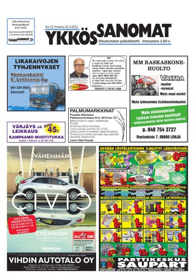 Ykkössanomat on myös alueensa vankka ilmoitusväline: koska paikallislehti luetaan moneen kertaan ja säilytetään usein seuraavan lehden ilmestymiseen saakka, ilmoituksetkin luetaan tarkkaan. Lehden ilmestymispäivä torstai on ilmoitusasiakkaidemme kannalta erinomainen: monesti perheet tekevät isommat ostoksensa yhdessä viikonloppuna.