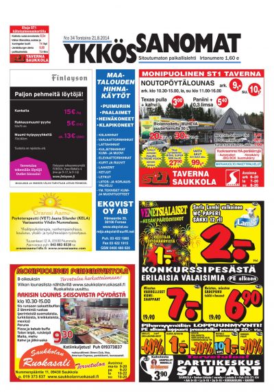 Ykkössanomat on myös alueensa vankka ilmoitusväline: koska paikallislehti luetaan moneen kertaan ja säilytetään usein seuraavan lehden ilmestymiseen saakka, ilmoituksetkin luetaan tarkkaan. Lehden ilmestymispäivä torstai on ilmoitusasiakkaidemme kannalta erinomainen: monesti perheet tekevät isommat ostoksensa yhdessä viikonloppuna.