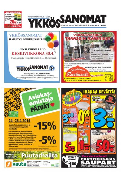 Ykkössanomat on myös alueensa vankka ilmoitusväline: koska paikallislehti luetaan moneen kertaan ja säilytetään usein seuraavan lehden ilmestymiseen saakka, ilmoituksetkin luetaan tarkkaan. Lehden ilmestymispäivä torstai on ilmoitusasiakkaidemme kannalta erinomainen: monesti perheet tekevät isommat ostoksensa yhdessä viikonloppuna.
