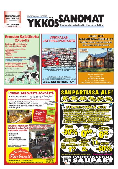 Ykkössanomat on myös alueensa vankka ilmoitusväline: koska paikallislehti luetaan moneen kertaan ja säilytetään usein seuraavan lehden ilmestymiseen saakka, ilmoituksetkin luetaan tarkkaan. Lehden ilmestymispäivä torstai on ilmoitusasiakkaidemme kannalta erinomainen: monesti perheet tekevät isommat ostoksensa yhdessä viikonloppuna.