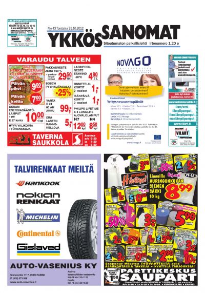 Ykkössanomat on myös alueensa vankka ilmoitusväline: koska paikallislehti luetaan moneen kertaan ja säilytetään usein seuraavan lehden ilmestymiseen saakka, ilmoituksetkin luetaan tarkkaan. Lehden ilmestymispäivä torstai on ilmoitusasiakkaidemme kannalta erinomainen: monesti perheet tekevät isommat ostoksensa yhdessä viikonloppuna.