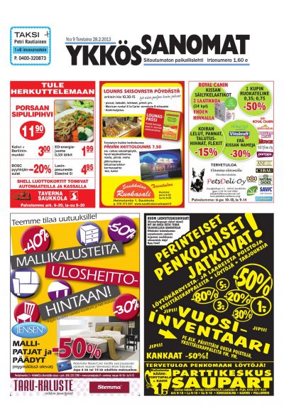 Ykkössanomat on myös alueensa vankka ilmoitusväline: koska paikallislehti luetaan moneen kertaan ja säilytetään usein seuraavan lehden ilmestymiseen saakka, ilmoituksetkin luetaan tarkkaan. Lehden ilmestymispäivä torstai on ilmoitusasiakkaidemme kannalta erinomainen: monesti perheet tekevät isommat ostoksensa yhdessä viikonloppuna.
