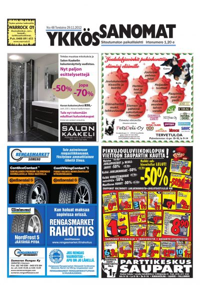 Ykkössanomat on myös alueensa vankka ilmoitusväline: koska paikallislehti luetaan moneen kertaan ja säilytetään usein seuraavan lehden ilmestymiseen saakka, ilmoituksetkin luetaan tarkkaan. Lehden ilmestymispäivä torstai on ilmoitusasiakkaidemme kannalta erinomainen: monesti perheet tekevät isommat ostoksensa yhdessä viikonloppuna.