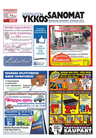 Ykkössanomat on myös alueensa vankka ilmoitusväline: koska paikallislehti luetaan moneen kertaan ja säilytetään usein seuraavan lehden ilmestymiseen saakka, ilmoituksetkin luetaan tarkkaan. Lehden ilmestymispäivä torstai on ilmoitusasiakkaidemme kannalta erinomainen: monesti perheet tekevät isommat ostoksensa yhdessä viikonloppuna.