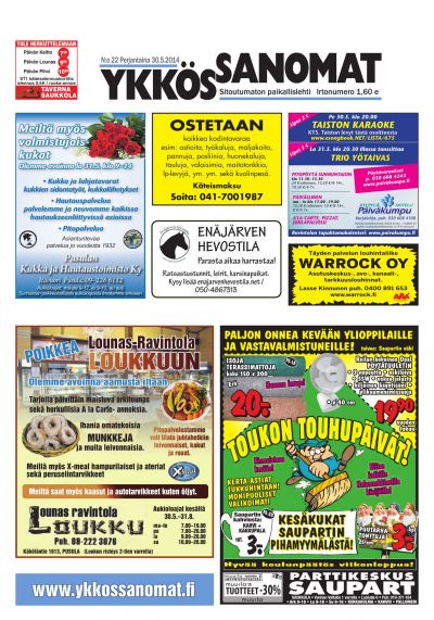 Ykkössanomat on myös alueensa vankka ilmoitusväline: koska paikallislehti luetaan moneen kertaan ja säilytetään usein seuraavan lehden ilmestymiseen saakka, ilmoituksetkin luetaan tarkkaan. Lehden ilmestymispäivä torstai on ilmoitusasiakkaidemme kannalta erinomainen: monesti perheet tekevät isommat ostoksensa yhdessä viikonloppuna.