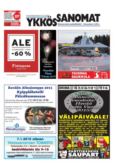 Ykkössanomat on myös alueensa vankka ilmoitusväline: koska paikallislehti luetaan moneen kertaan ja säilytetään usein seuraavan lehden ilmestymiseen saakka, ilmoituksetkin luetaan tarkkaan. Lehden ilmestymispäivä torstai on ilmoitusasiakkaidemme kannalta erinomainen: monesti perheet tekevät isommat ostoksensa yhdessä viikonloppuna.