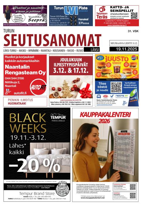 Turun Seutusanomat länsi 19.11.2025 Lue ilmaiseksi! 0,00 €